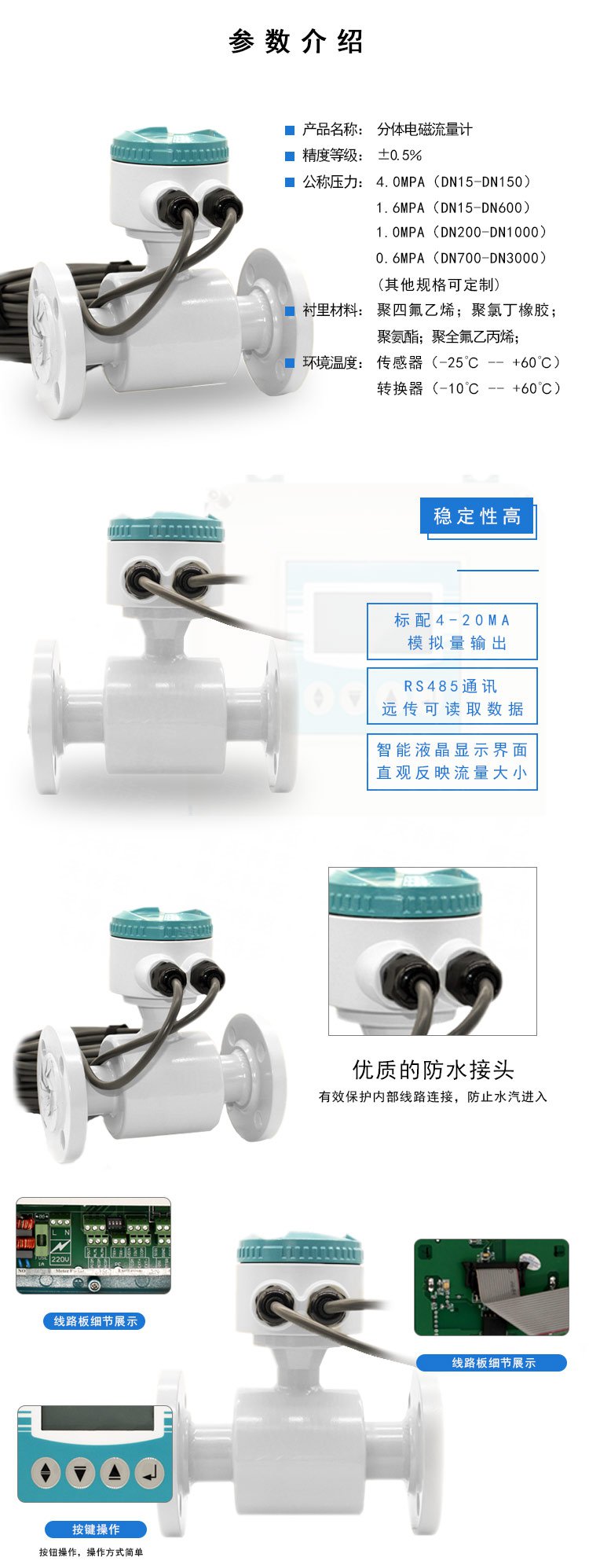 CQTLD系列電磁流量計是根據法拉第電磁感應定律進行流量測試的流量計。電磁流量計的優點是壓損極小,可測流量范圍大。