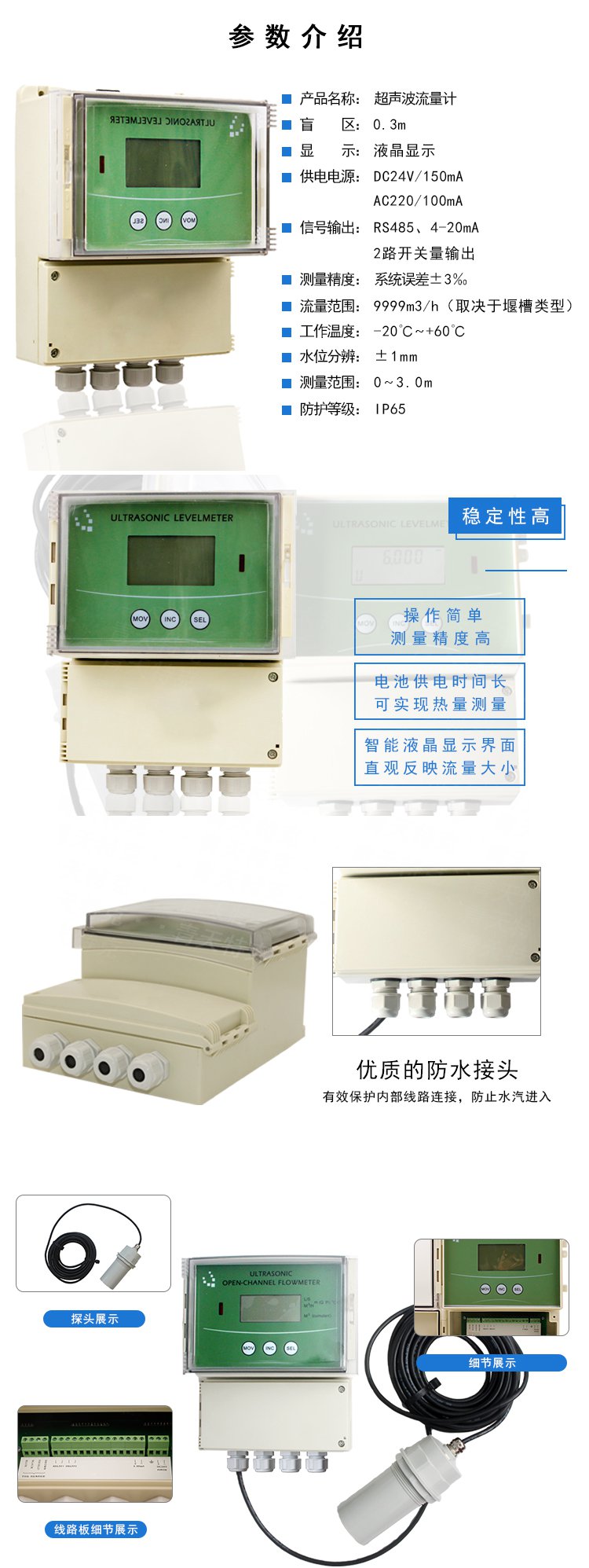 適用于:測量污水廠、企事業單位的污水排放口、城市下水道的流量及灌渠等。